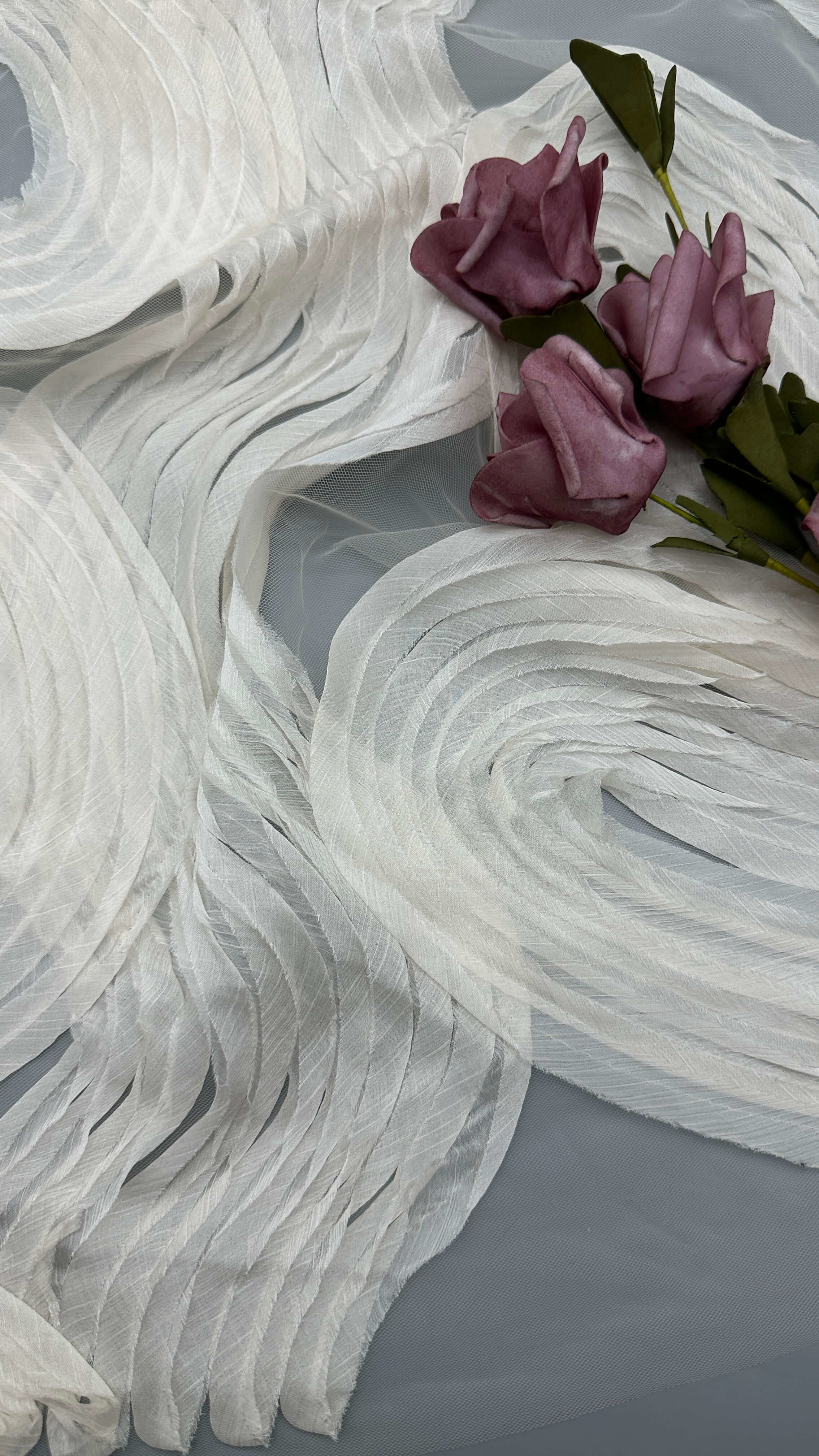 | Highlight: | luxury white pleated lace fabric,elegant pleated embroidery fabric,durable wedding occasion fabric |