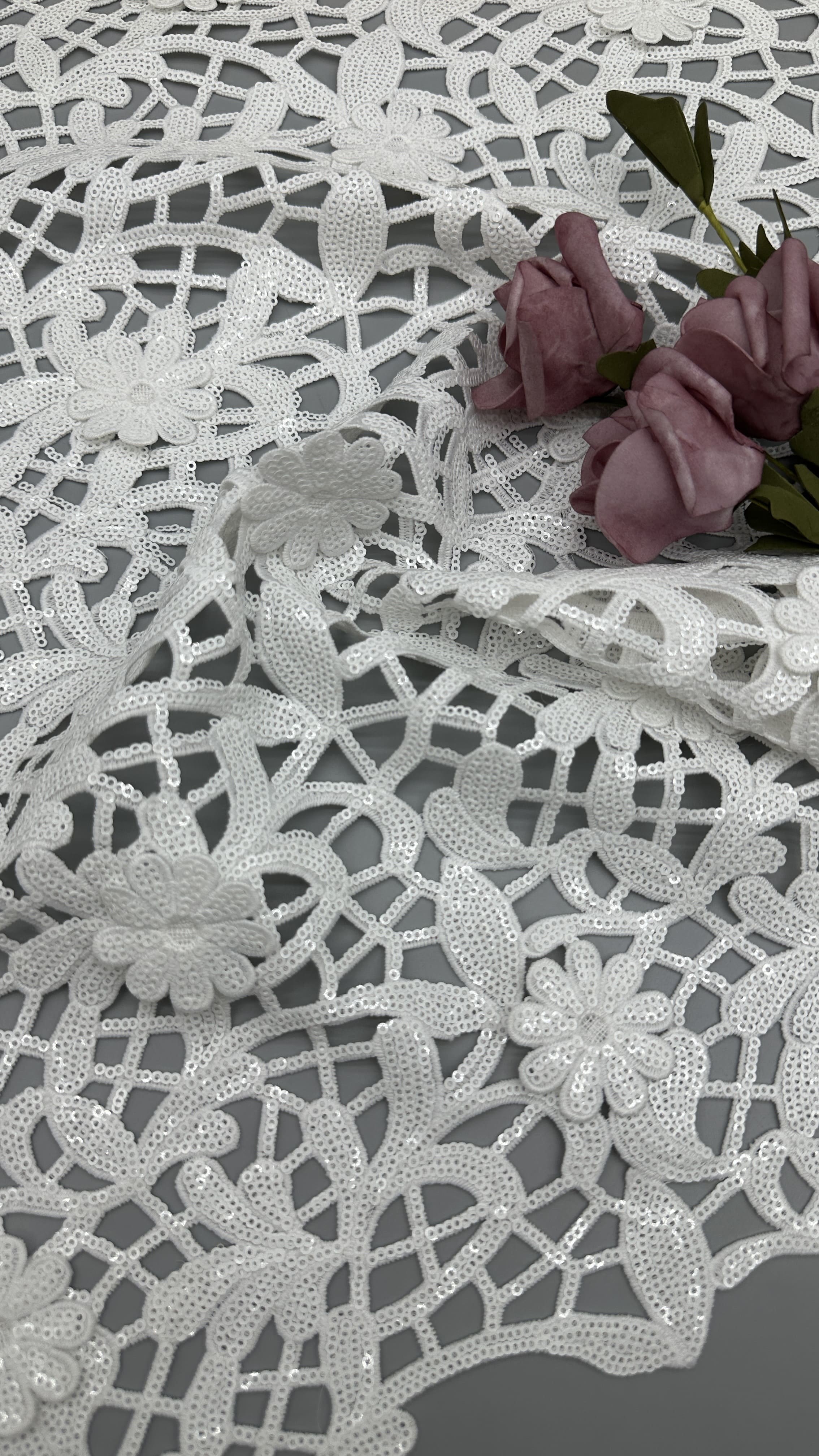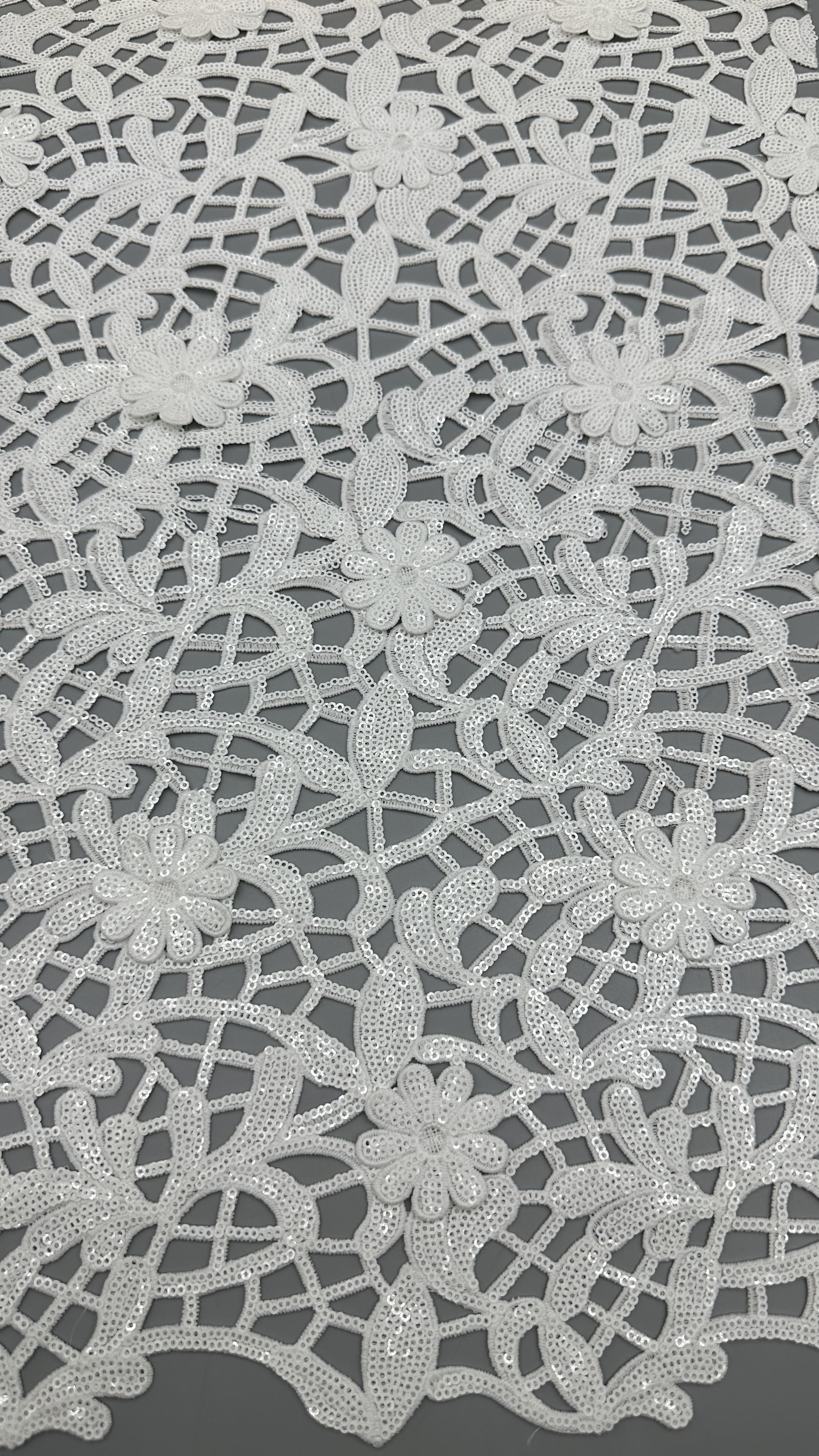 Highlight: | Crochet Lace Fabric,White Sequin Embroidered Lace Fabric,Leafy Luxury Occasion Lace Fabric |