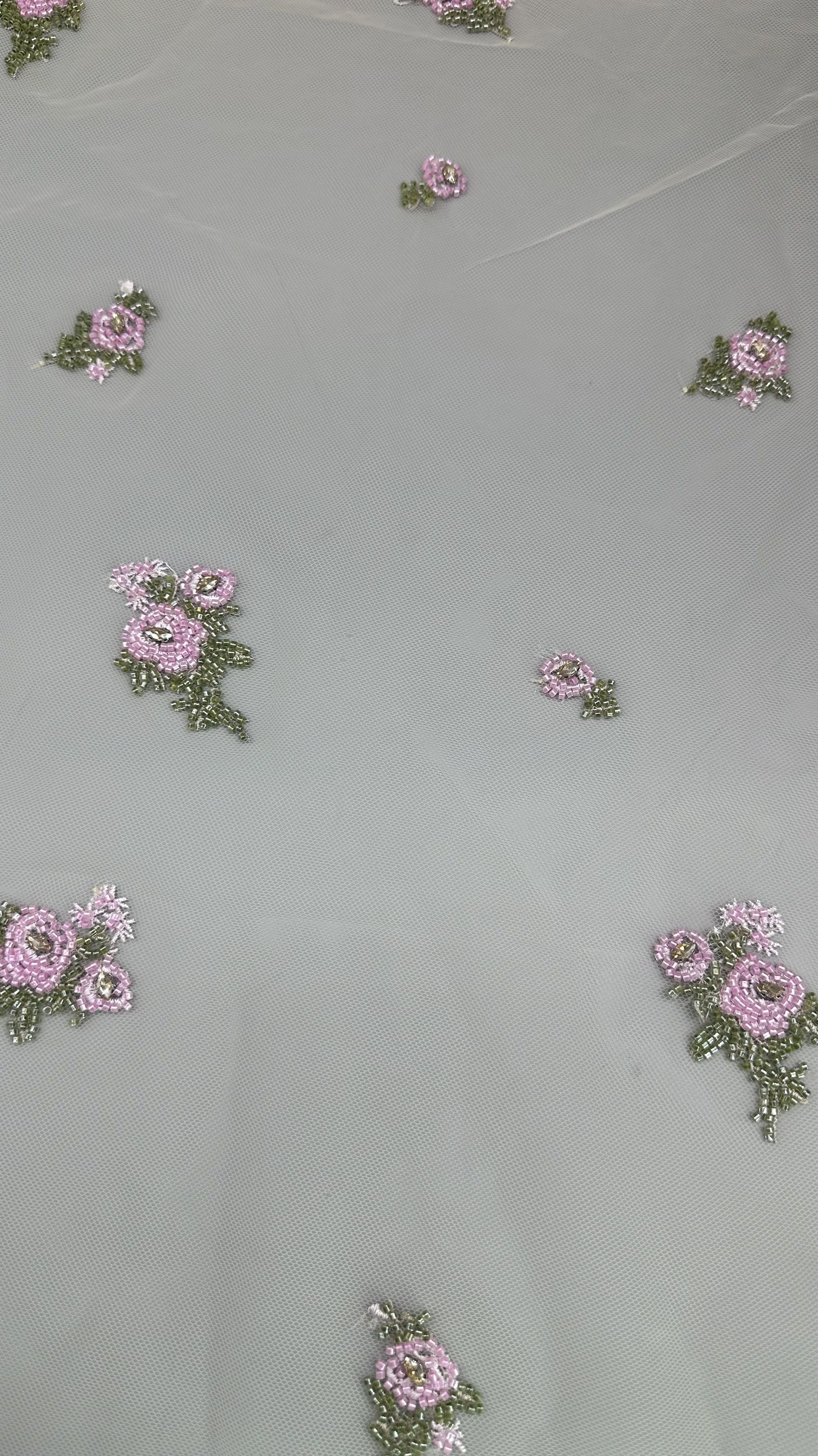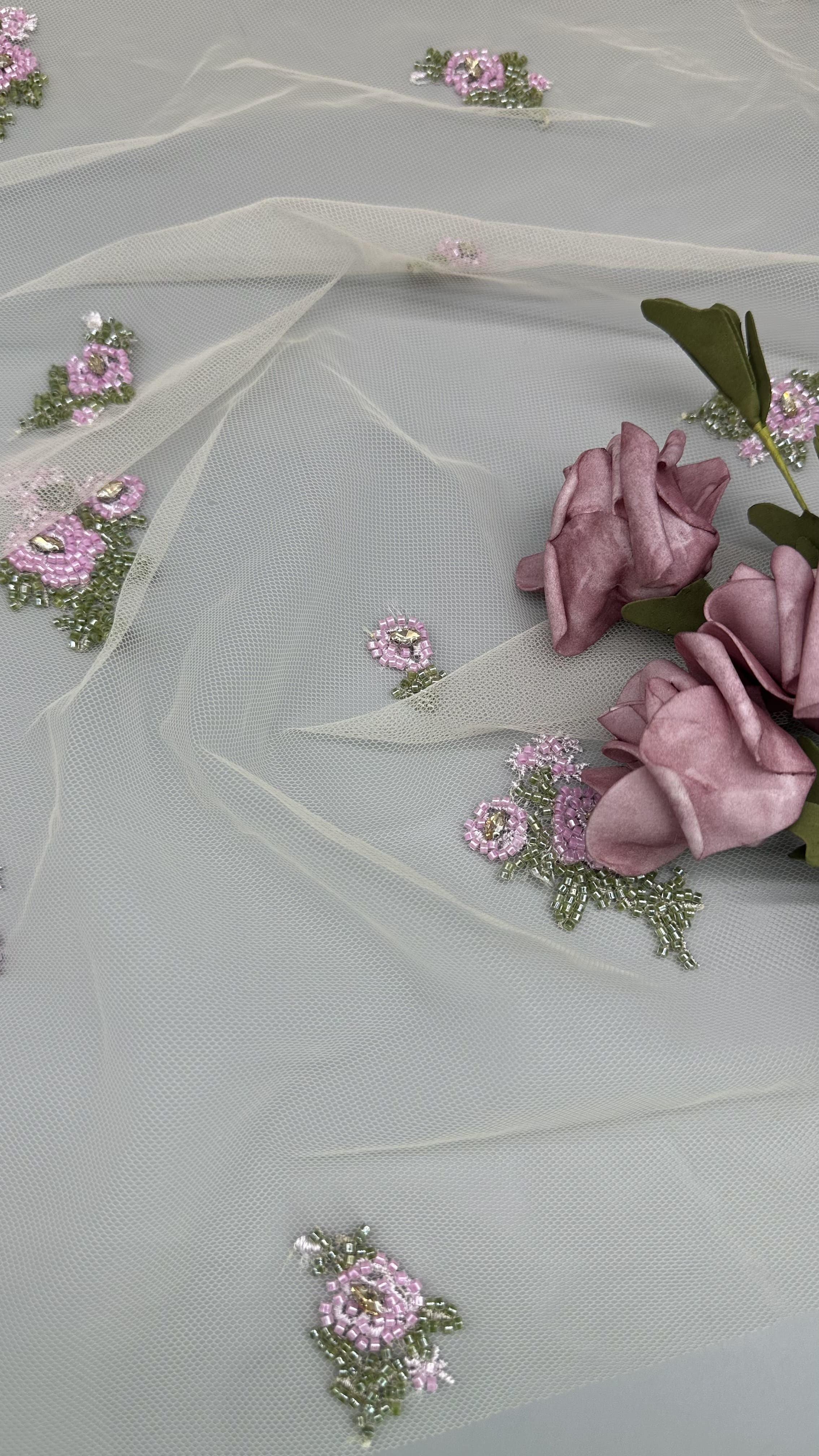 Highlight: | Beaded Floral Lace Fabric,Birthday Lace Fabric,Embroidered Lace Mesh Fabric |