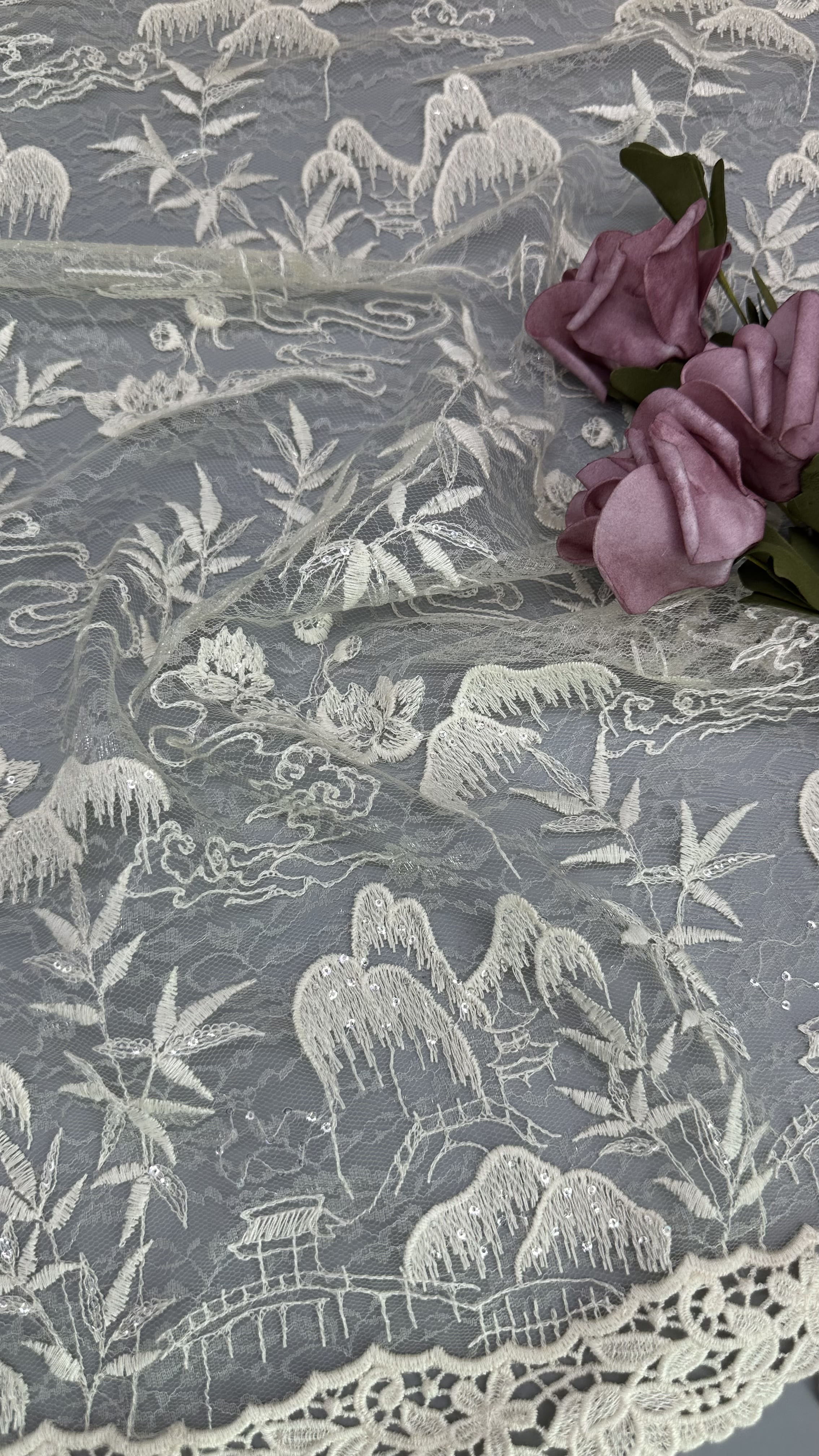 Highlight: | Embroidered Lace Fabric For Wedding,Soft Lightweight Embroidered Lace Fabric,Elegant Floral Embroidered Lace Fabric |