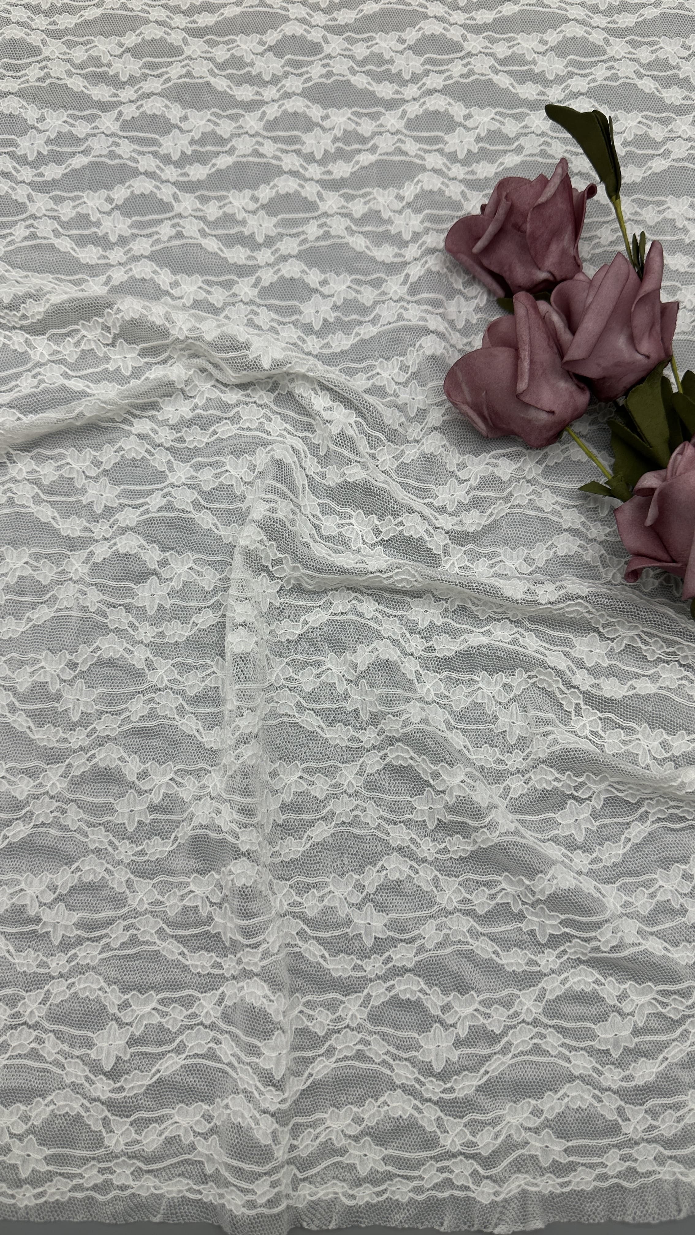 Highlight: | Elegant Floral Patterns Embroidered Lace,Polyester Embroidered Lace For Romantic Gowns,White Color Embroidered Lace |