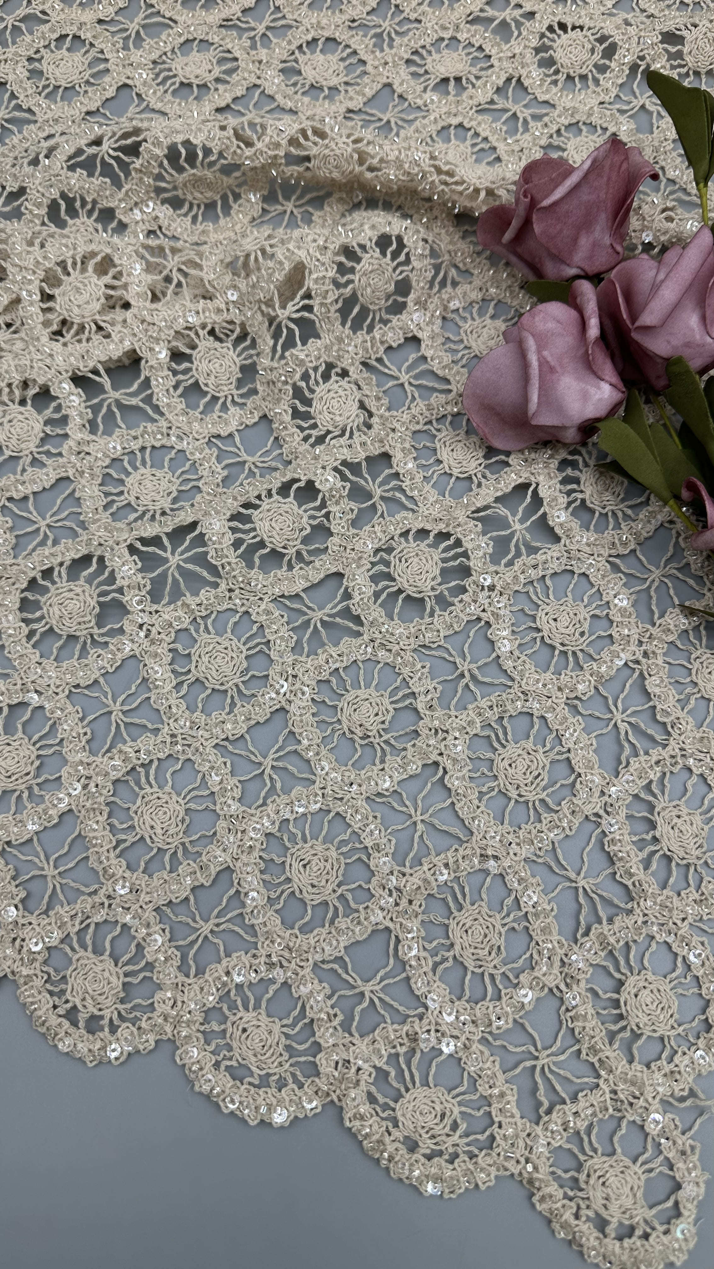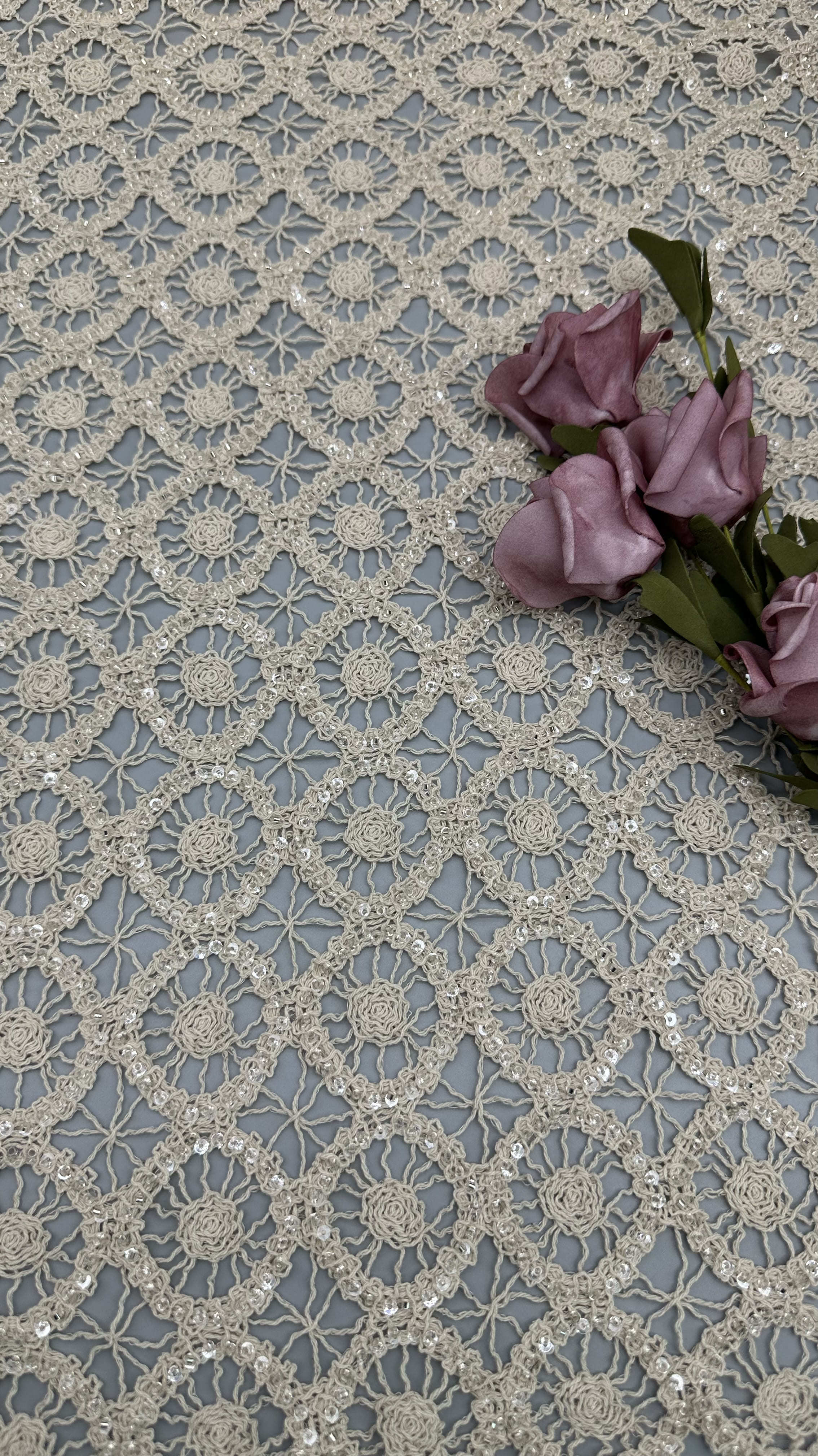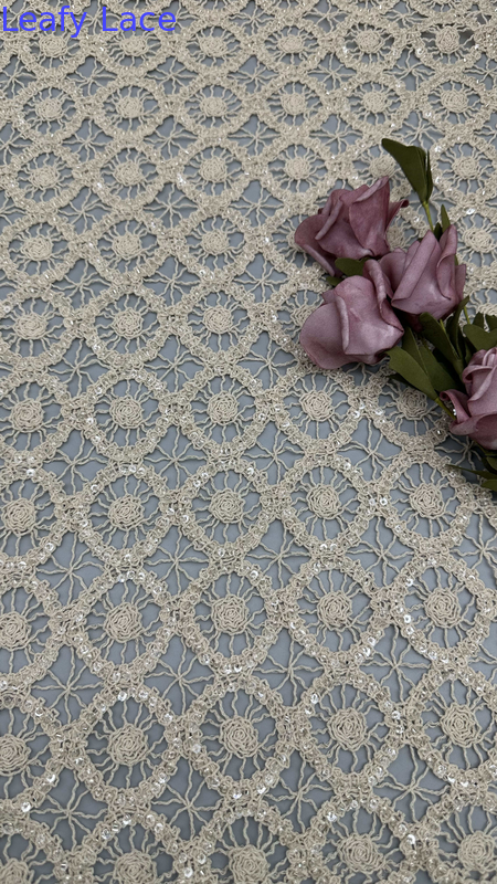 Highlight: | Corded Sequin Embroidered Lace Fabric,Corded Embroidered Lace Fabric |