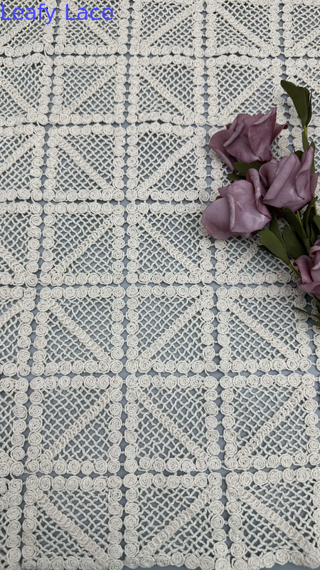 Highlight: | Cotton Corded Lace Fabric,Leafy Corded Lace Fabric,Windows Design Corded Lace Fabric |