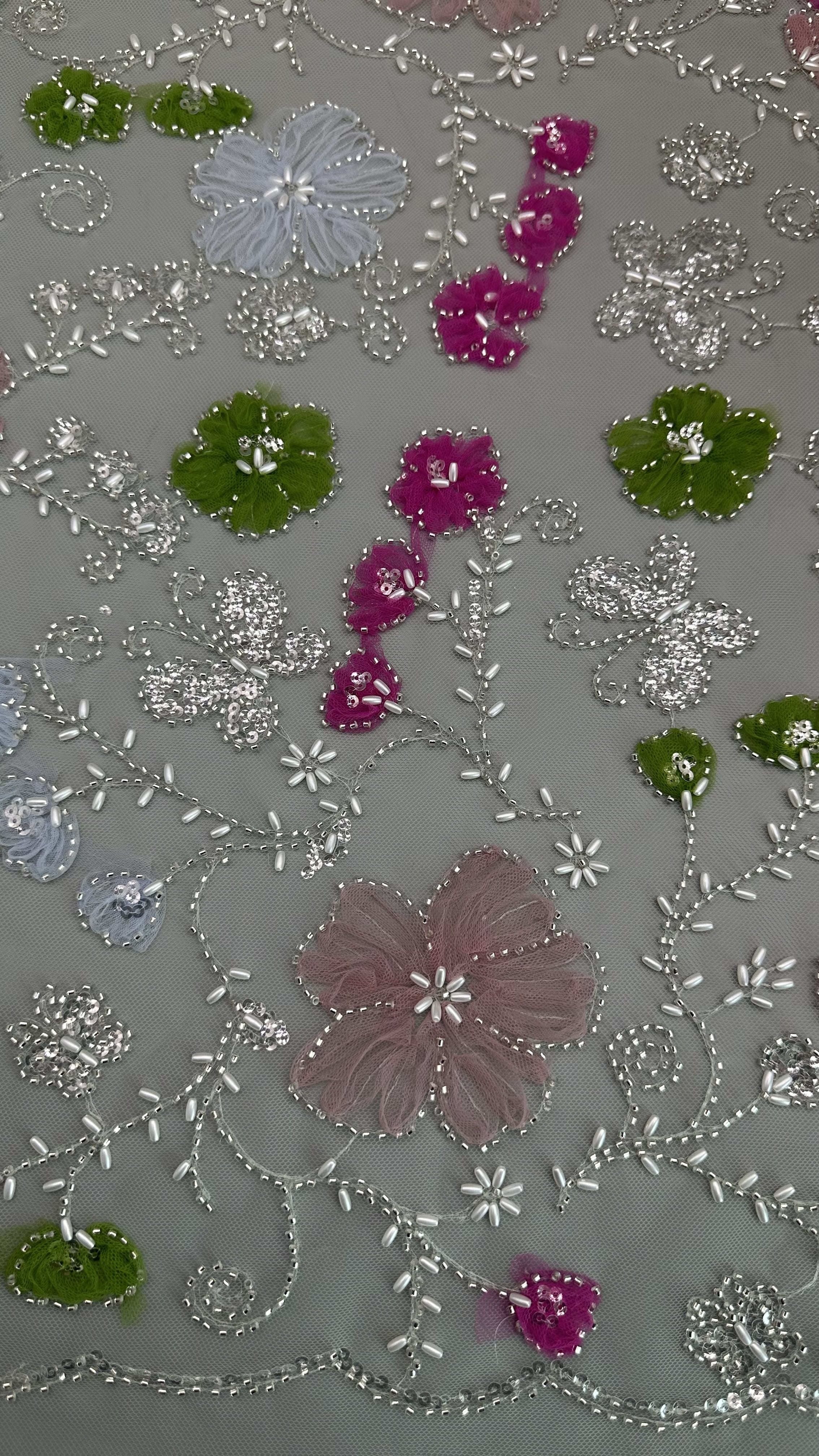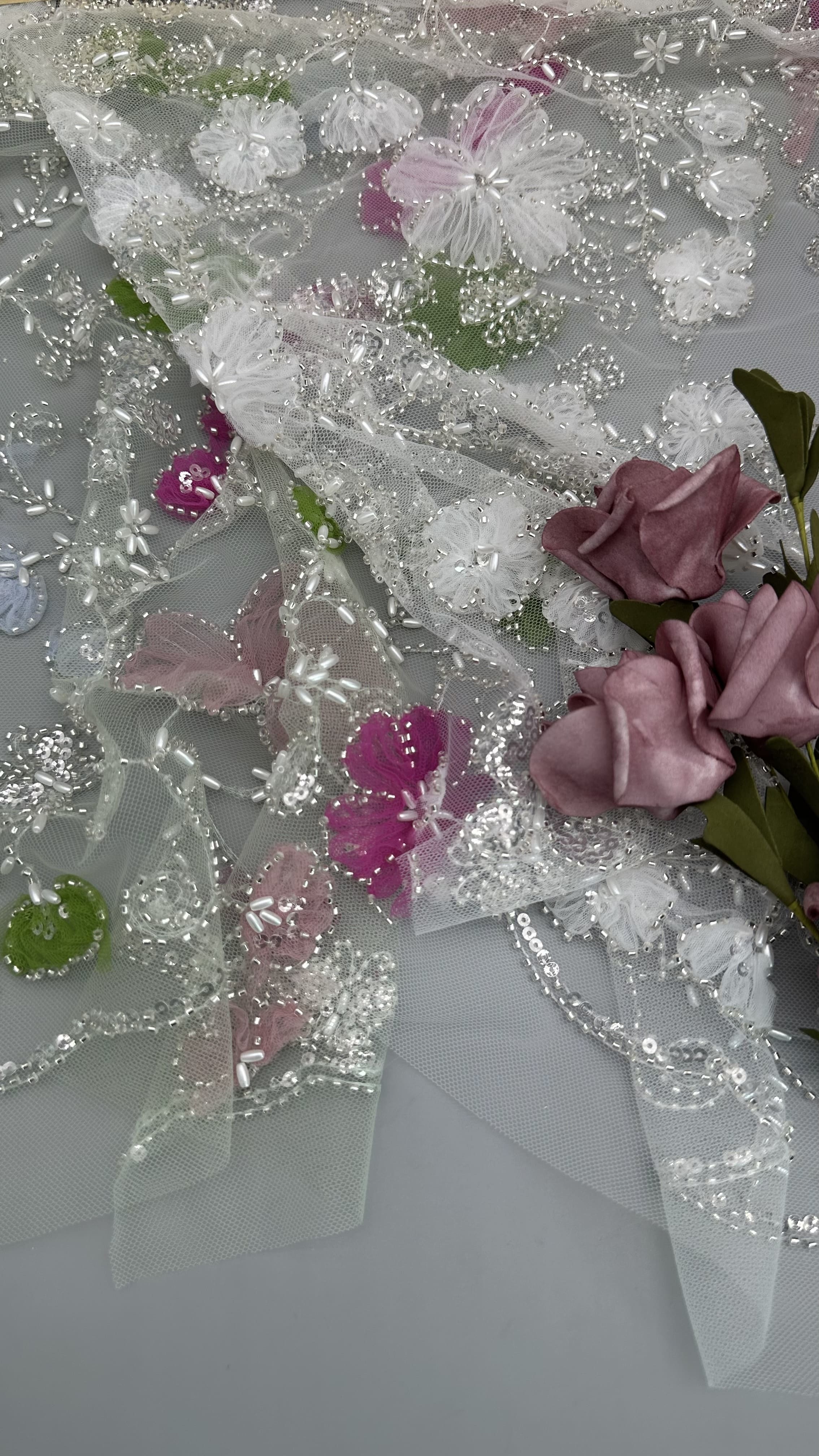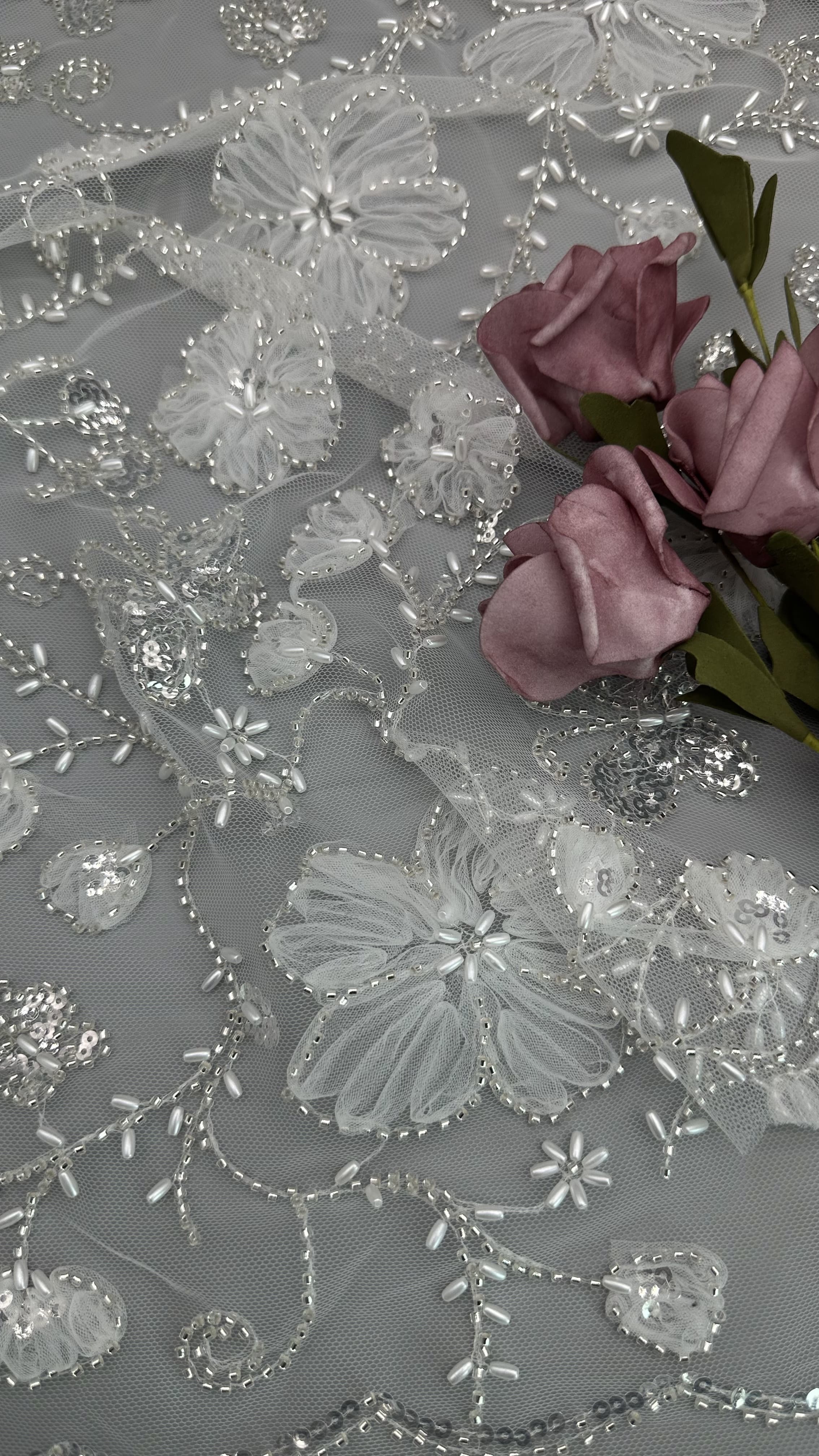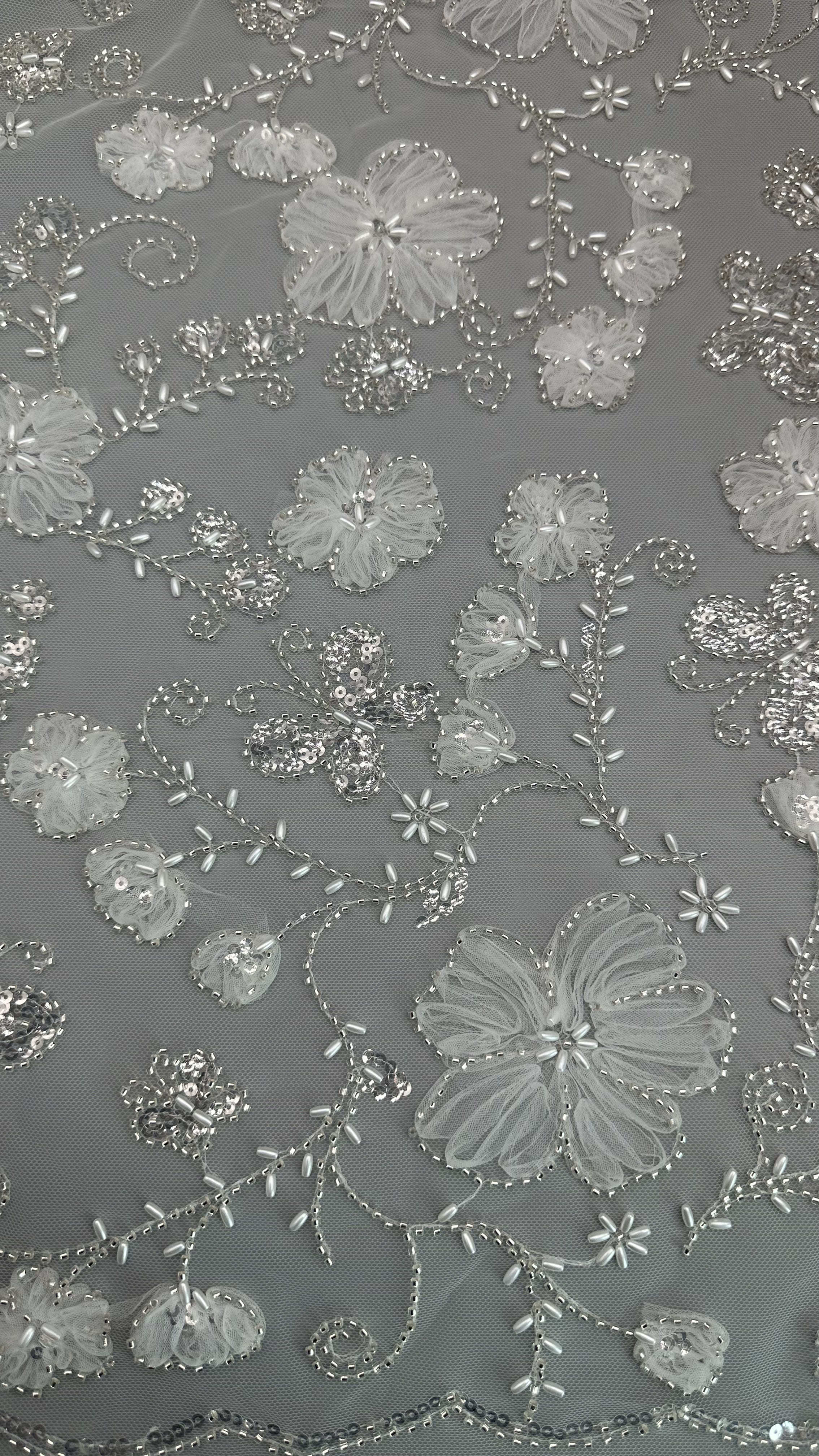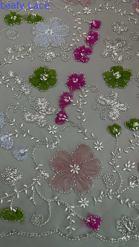Highlight: | Beaded Embroidery Mesh,Leafy Embroidery Mesh,Floral Embroidery Mesh |