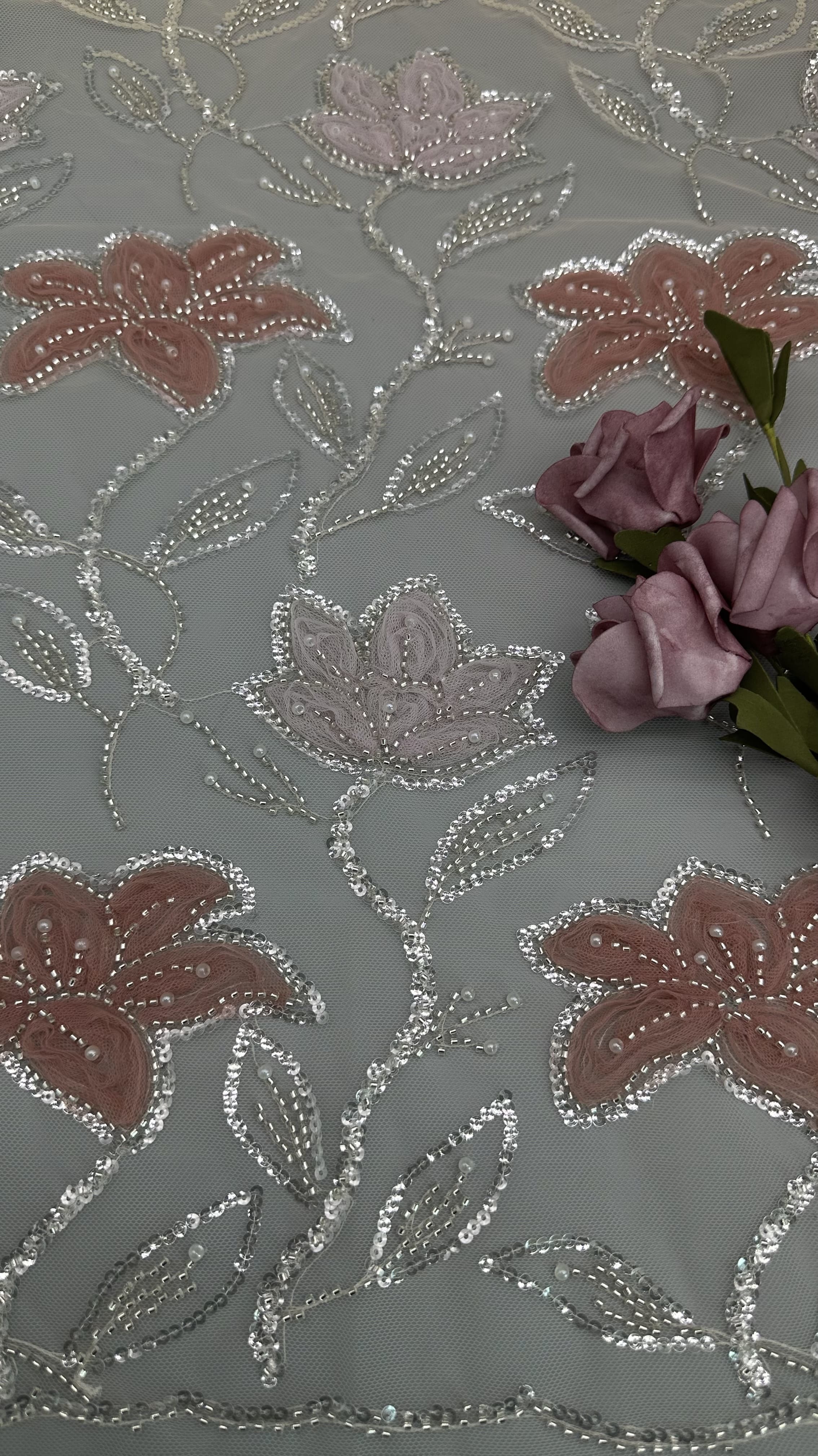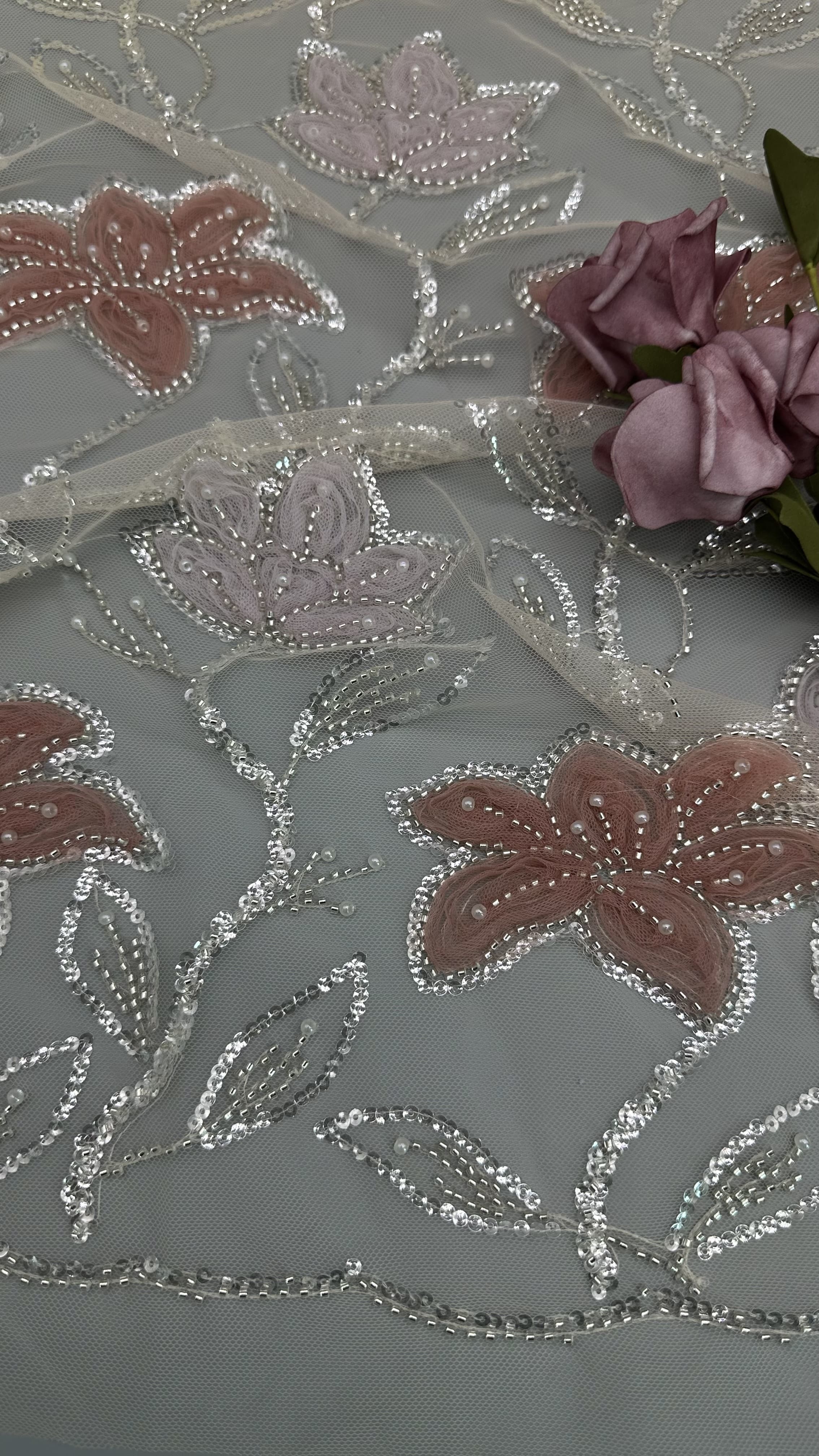 Highlight: | Beaded Floral Embroidered Lace Fabric,Hollow-up Polyester Beaded Lace Fabric |