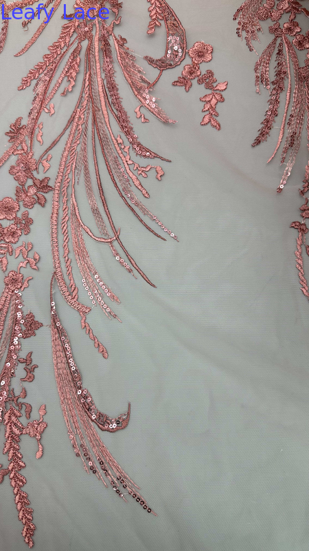 Lace embroidery fabric with delicate leafy motifs is a popular choice for wedding and party dresses, offering elegance, texture, and intricate detailing. The technology behind its production involves a blend of traditional craftsmanship and modern textile innovations.