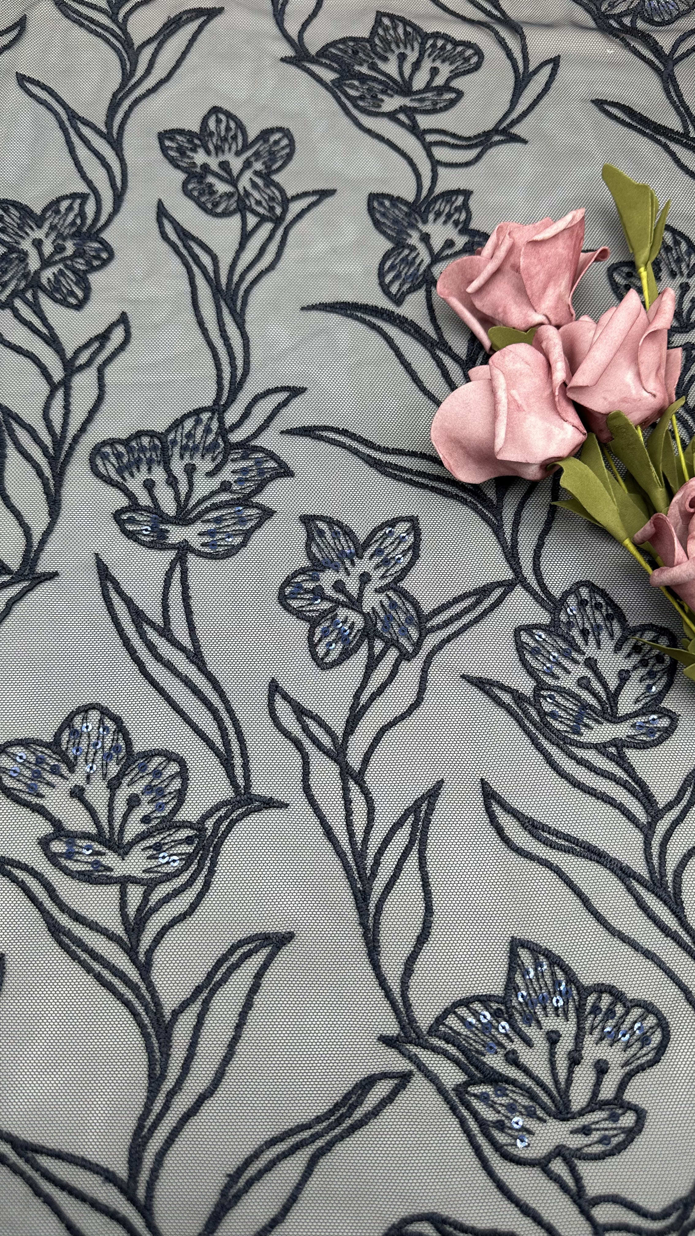 Highlight: | sequin embroidered lace fabric,luxury mesh embroidered fabric,elegant sequin lace fabric |
