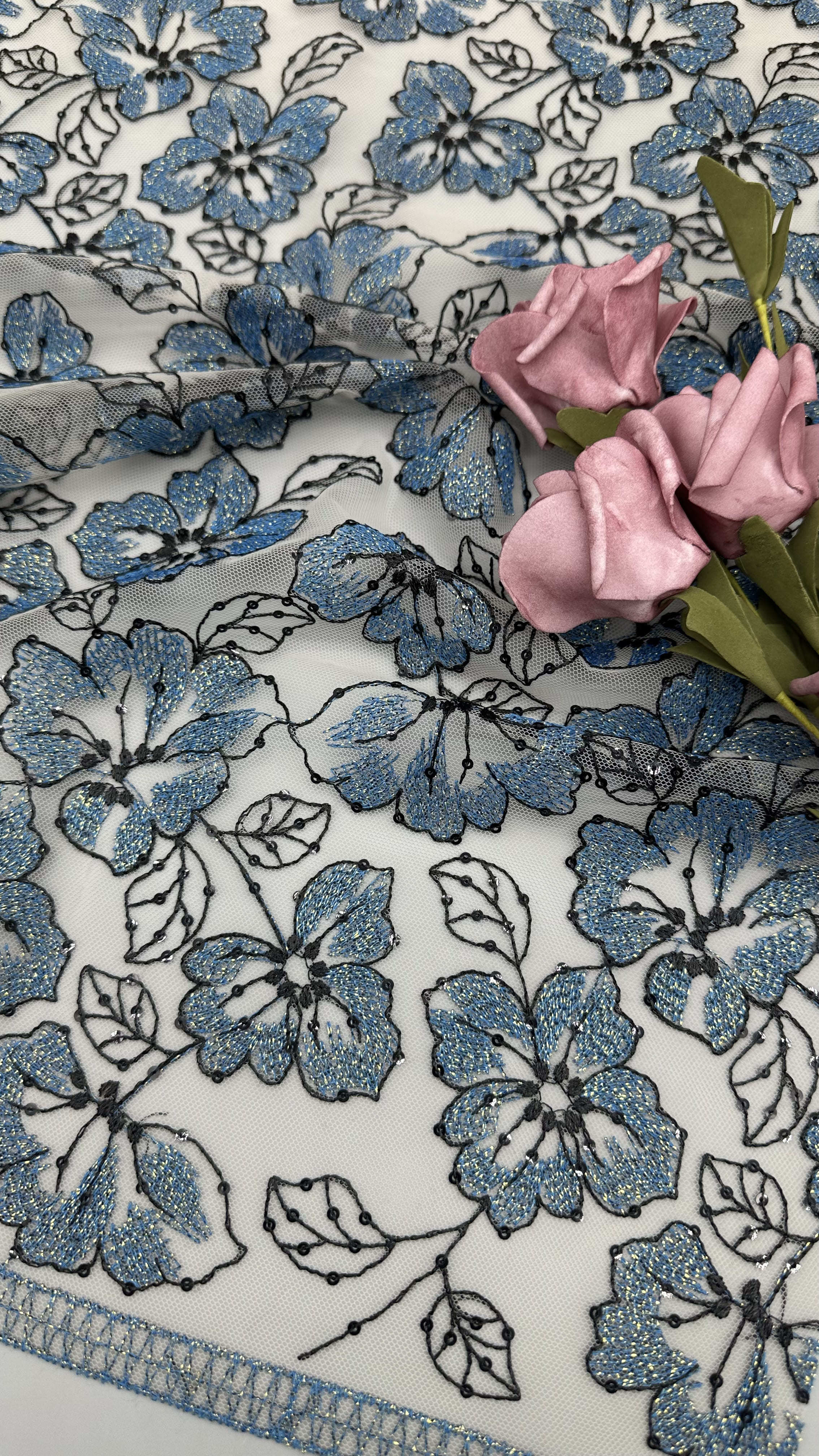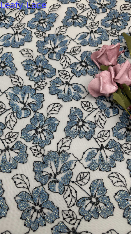 Lace embroidery fabric with delicate leafy motifs is a popular choice for wedding and party dresses, offering elegance, texture, and intricate detailing. The technology behind its production involves a blend of traditional craftsmanship and modern textile innovations.
