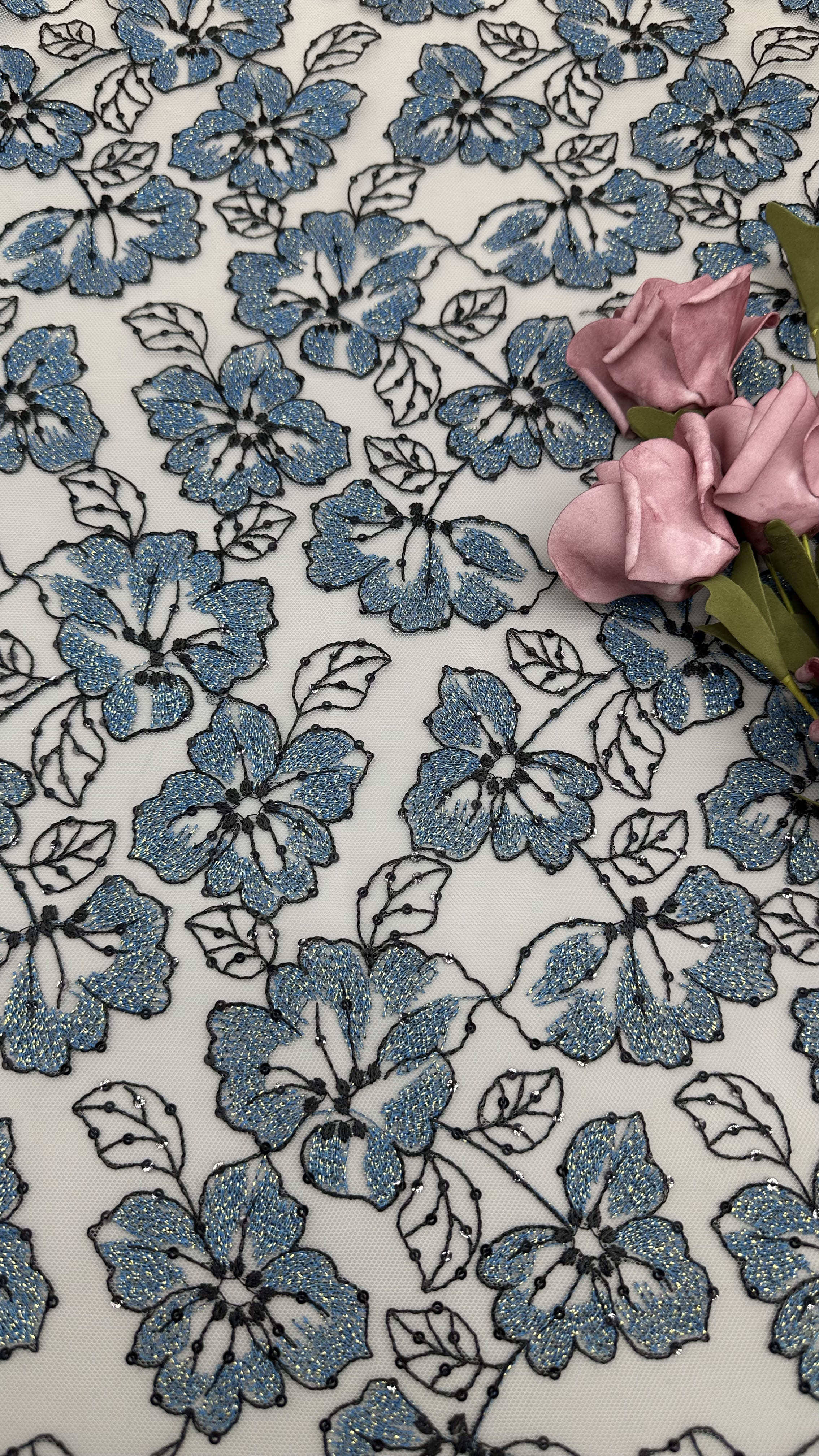 Highlight: | metallic lace embroidered fabric,3D floral mesh fabric,luxury metallic lace fabric |