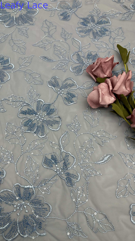 Lace embroidery fabric with delicate leafy motifs is a popular choice for wedding and party dresses, offering elegance, texture, and intricate detailing. The technology behind its production involves a blend of traditional craftsmanship and modern textile innovations.