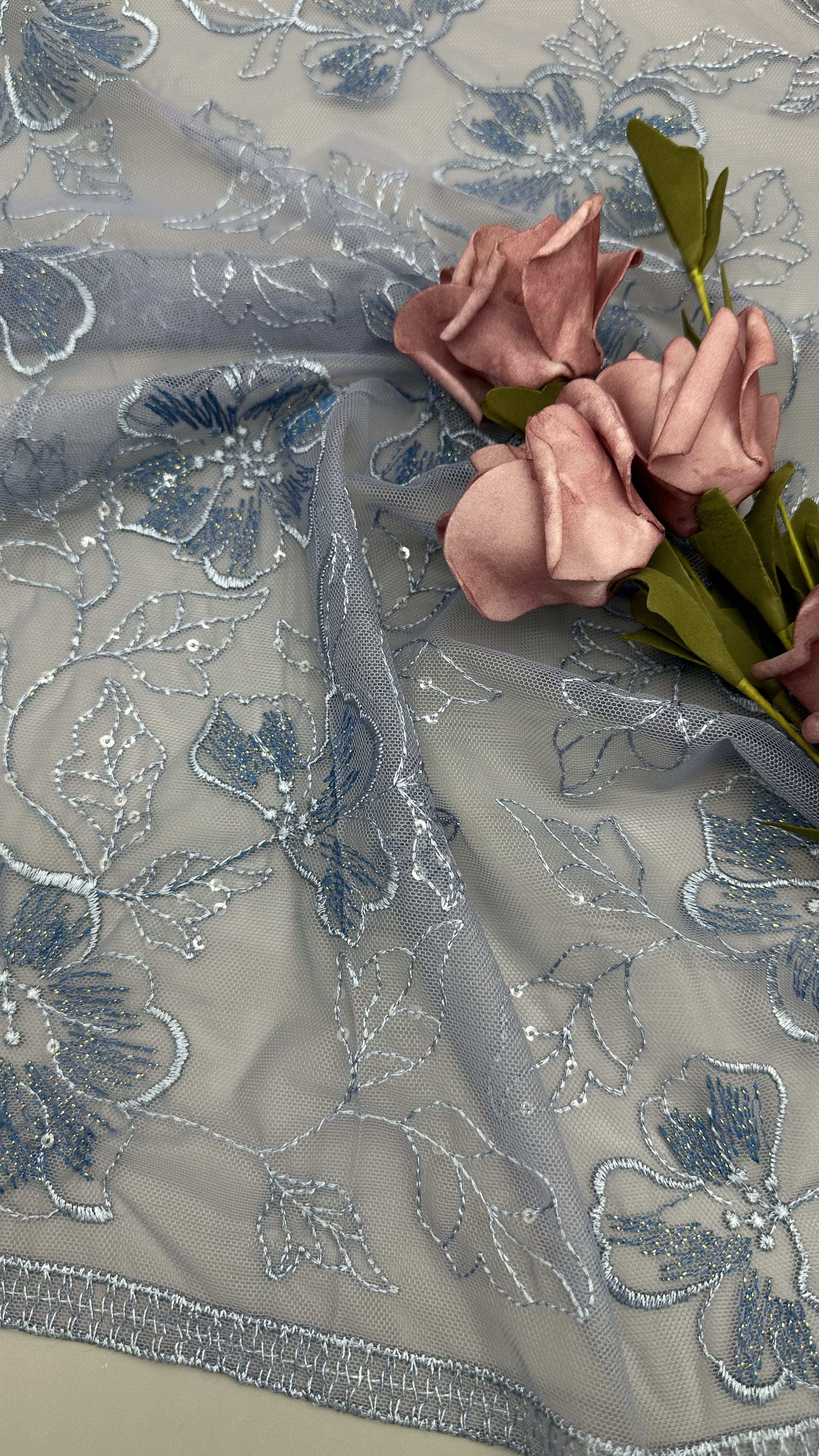 Highlight: | metallic lace fabric for gown,leafy embroidered lace fabric,luxury mesh lace fabric |