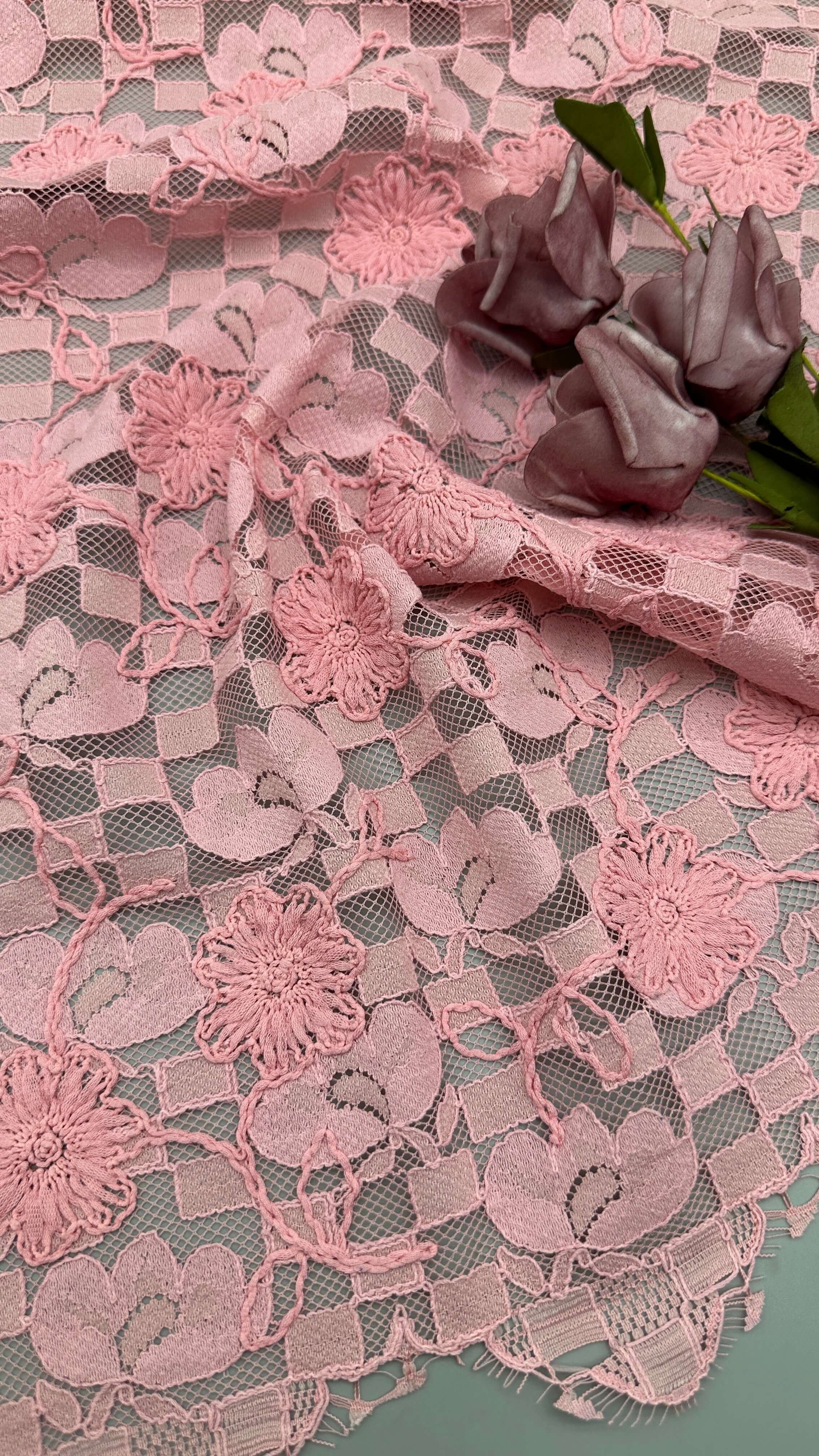 Lace embroidery fabric with delicate leafy motifs is a popular choice for wedding and party dresses, offering elegance, texture, and intricate detailing. The technology behind its production involves a blend of traditional craftsmanship and modern textile innovations.