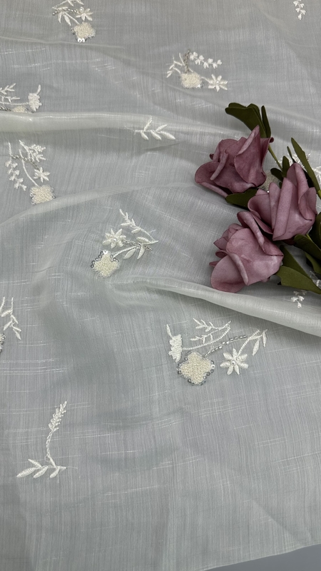 High-quality fabrics like tulle, organza, silk, or polyester blends serve as the base.