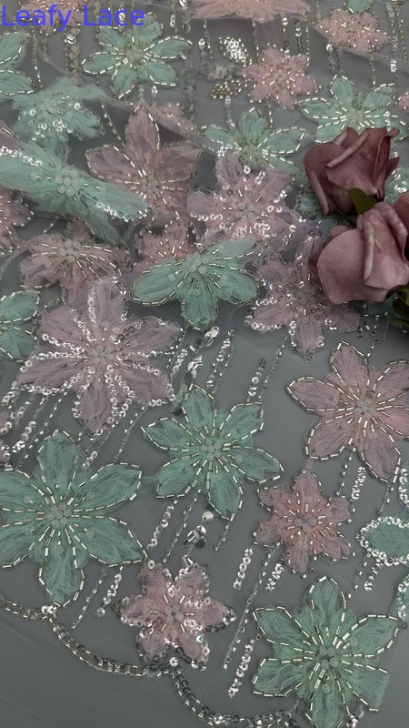 Lace embroidery fabric with delicate leafy motifs is a popular choice for wedding and party dresses, offering elegance, texture, and intricate detailing. The technology behind its production involves a blend of traditional craftsmanship and modern textile innovations.