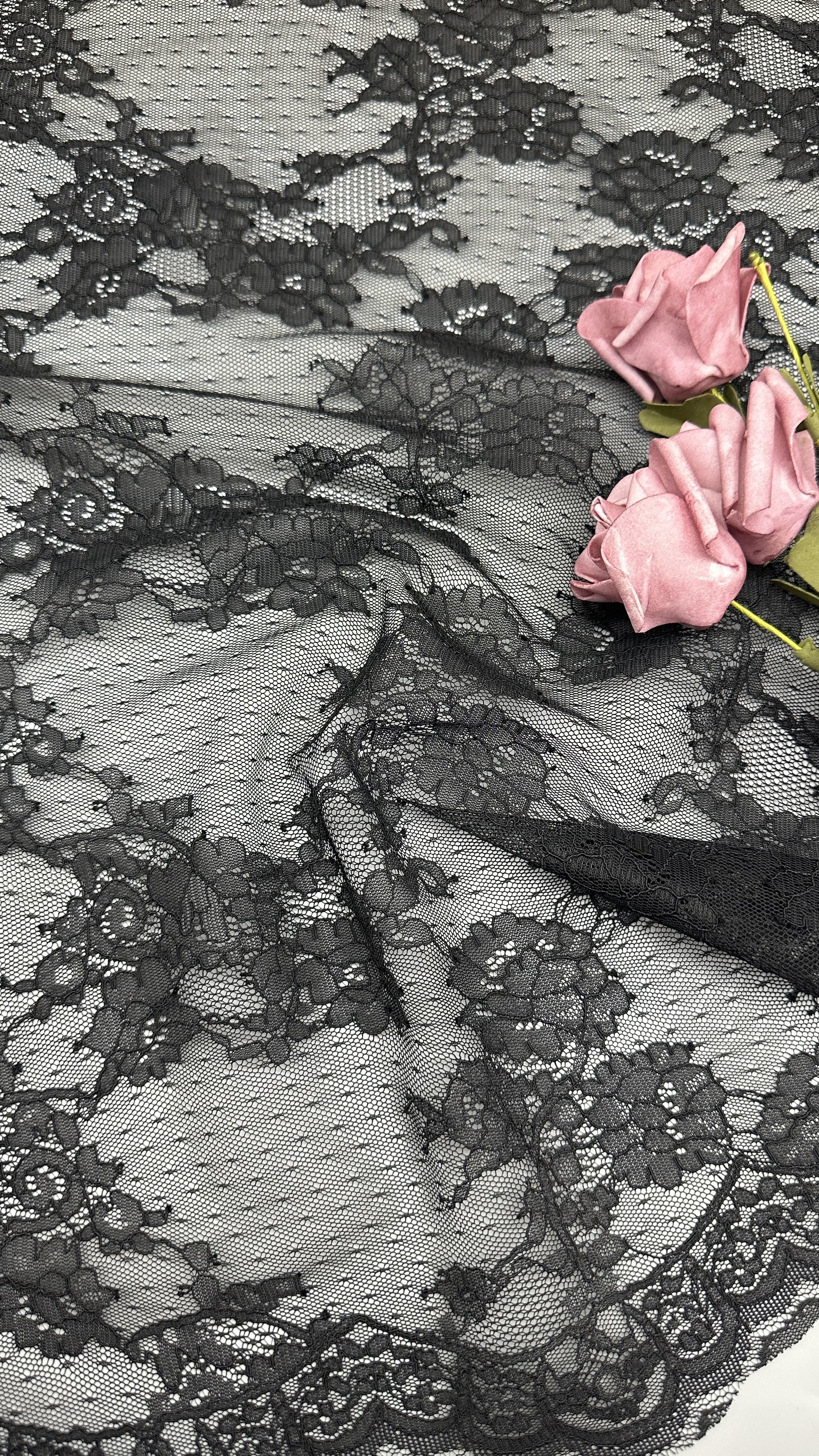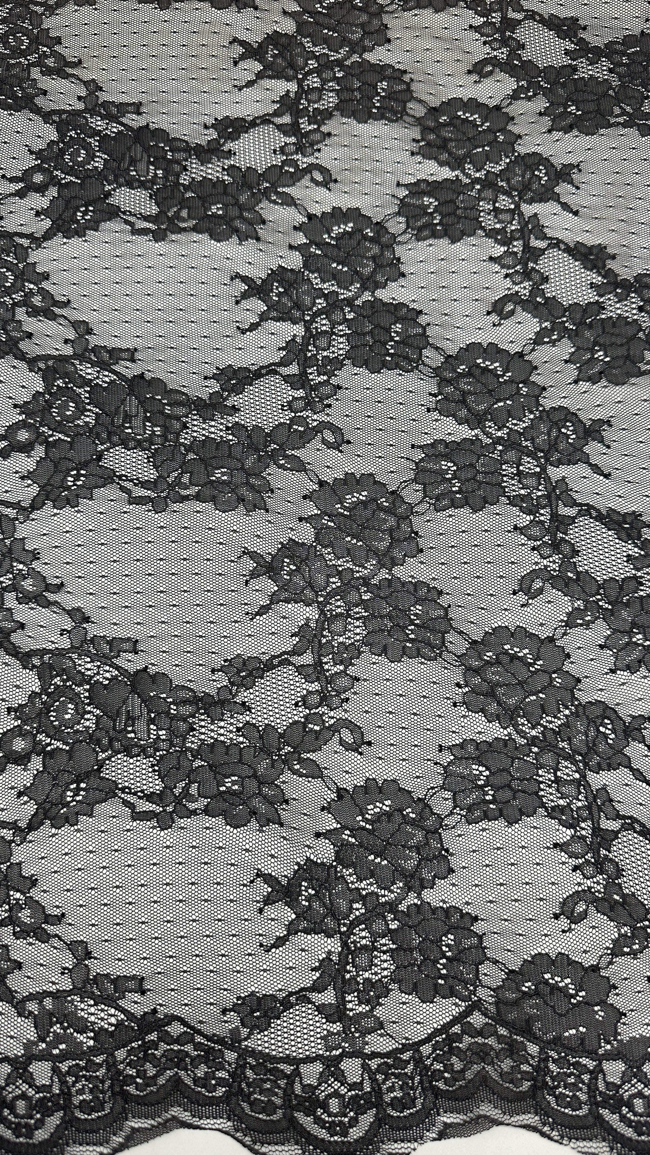 | Highlight: | Black French Chantilly lace trim,Elegant Chantilly lace for wedding dresses,Guipure lace trim for dresses |