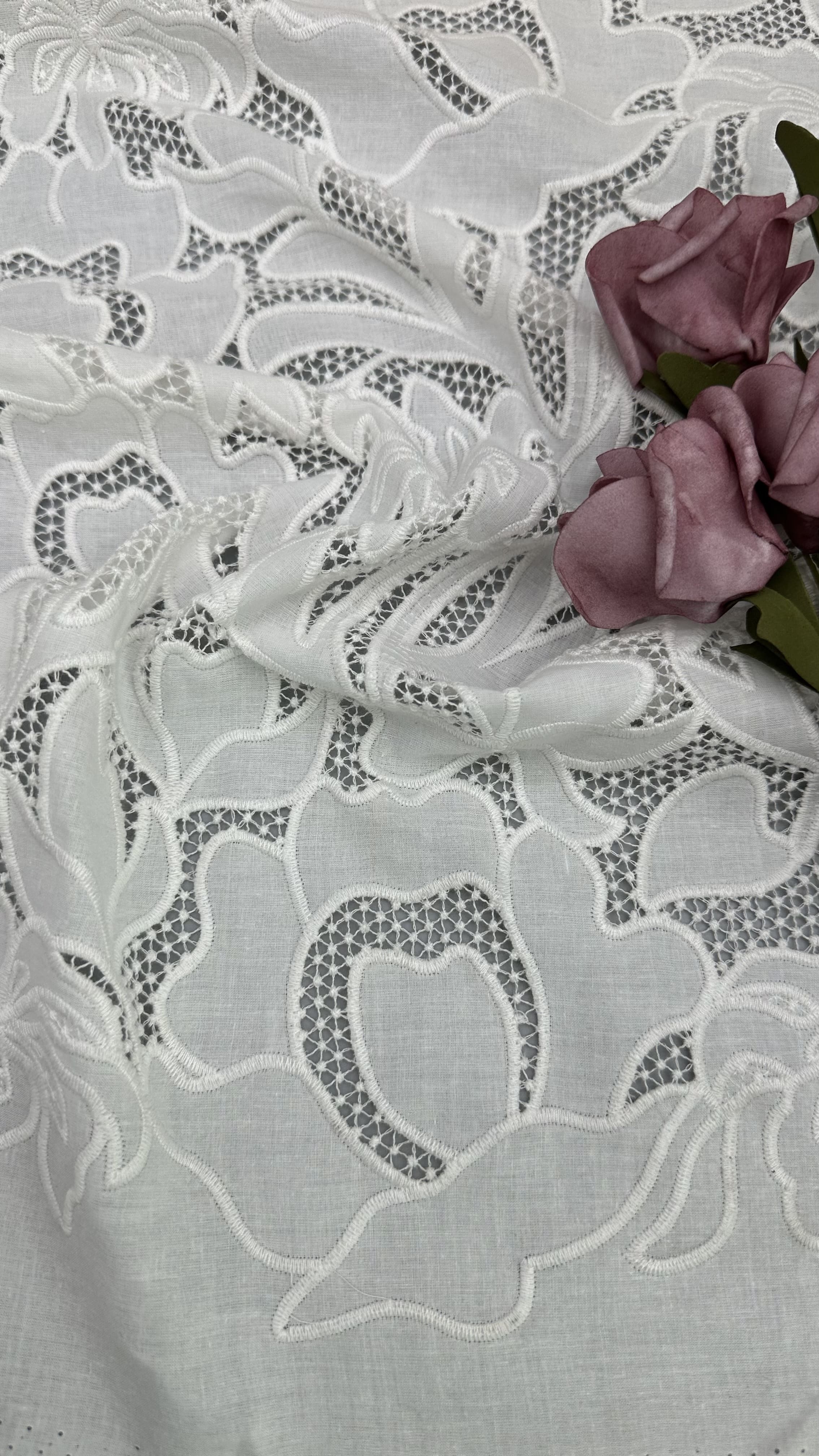 A creative team keeps abreast of trends. The research facilities and production equipment are all advances. Most of our patterns are copyrighted and based on original artwork. Most important is our focus on breakthrough of the techniques that advance the art of lace marking . Additionally, Leafy Lace Carries the enough greige and finished colors to response to our customers’ s rapidly changing needs.